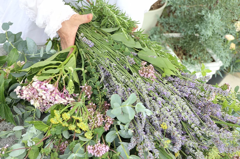 前日から、ハーブ畑でたくさんのハーブを狩り入れて