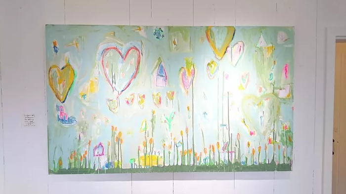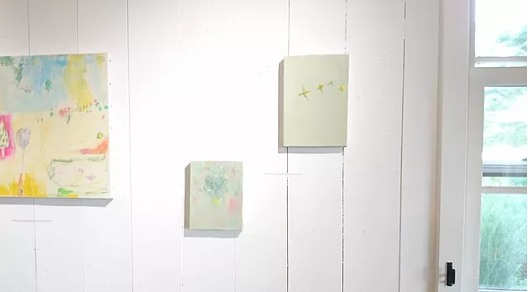 斎藤さんのブルーの屋根のお家の上には、ナカムラさんの描く空や光の絵画が本当に自然で良く似合う。