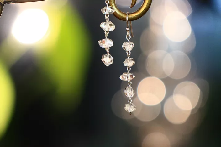 ダイヤモンドクオーツのピアス。