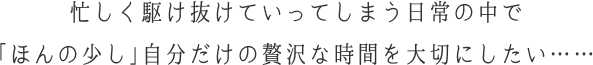 忙しく駆け抜けていってしまう日常の中で「ほんの少し」自分だけの贅沢な時間を大切にしたい……